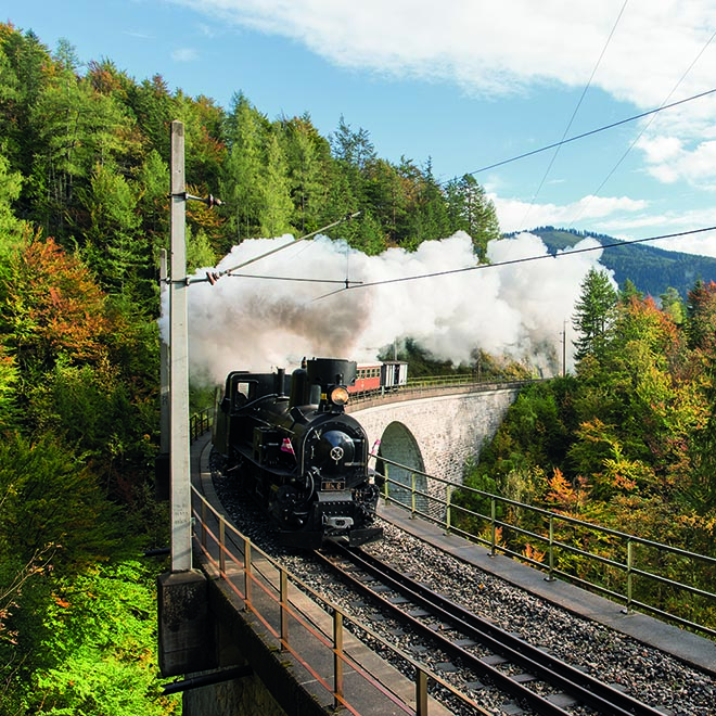 Von der Landeshauptstadt St. Pölten durch das malerische Pielachtal und das ÖTSCHER:REICH in den Wallfahrtsort Mariazell. Die Fahrt mit der längsten Schmalspurbahn Österreichs gestaltet sich sehr eindrucksvoll. Erleben Sie Technik im Einklang mit der Natur und genießen Sie bei einem Zwischenstopp die "Tour der Sinne" in der World of STYX.