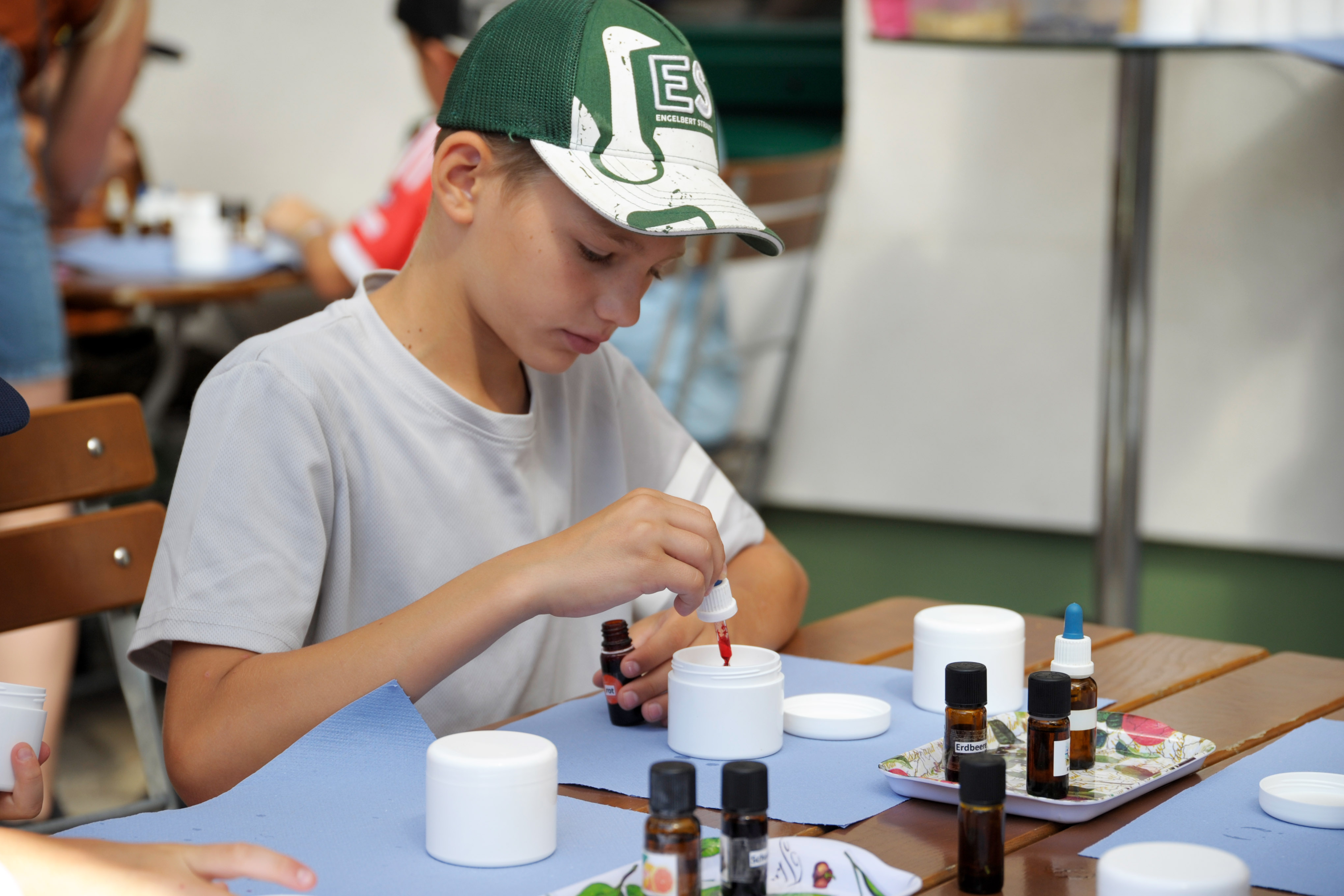 Während des einwöchigen Ferienbetreuungsprojekts bot STYX Naturcosmetic einen von zahlreichen spannenden Workshops an. Die Kinder und Jugendlichen konnten in Ober-Grafendorf hinter die Kulissen des größten Naturkosmetikherstellers Österreichs blicken, den Familienbetrieb hautnah erleben sowie zum Schluss natürlich sich von köstlicher BIO Schokolade aus unserer Schokoladenmanufaktur verführen lassen. Geschichten und Wissenswertes rund um die Welt der Heilpflanzen und Wildkräuter, wie und wofür man sie einsetzen kann, erfuhren sie bei einem Spaziergang durch unseren kleinen, aber feinen Kräutergarten. Sie konnten in den Beruf der Kosmetikproduktion hineinschnuppern und ihr ganz persönliches Badesalz herstellen.