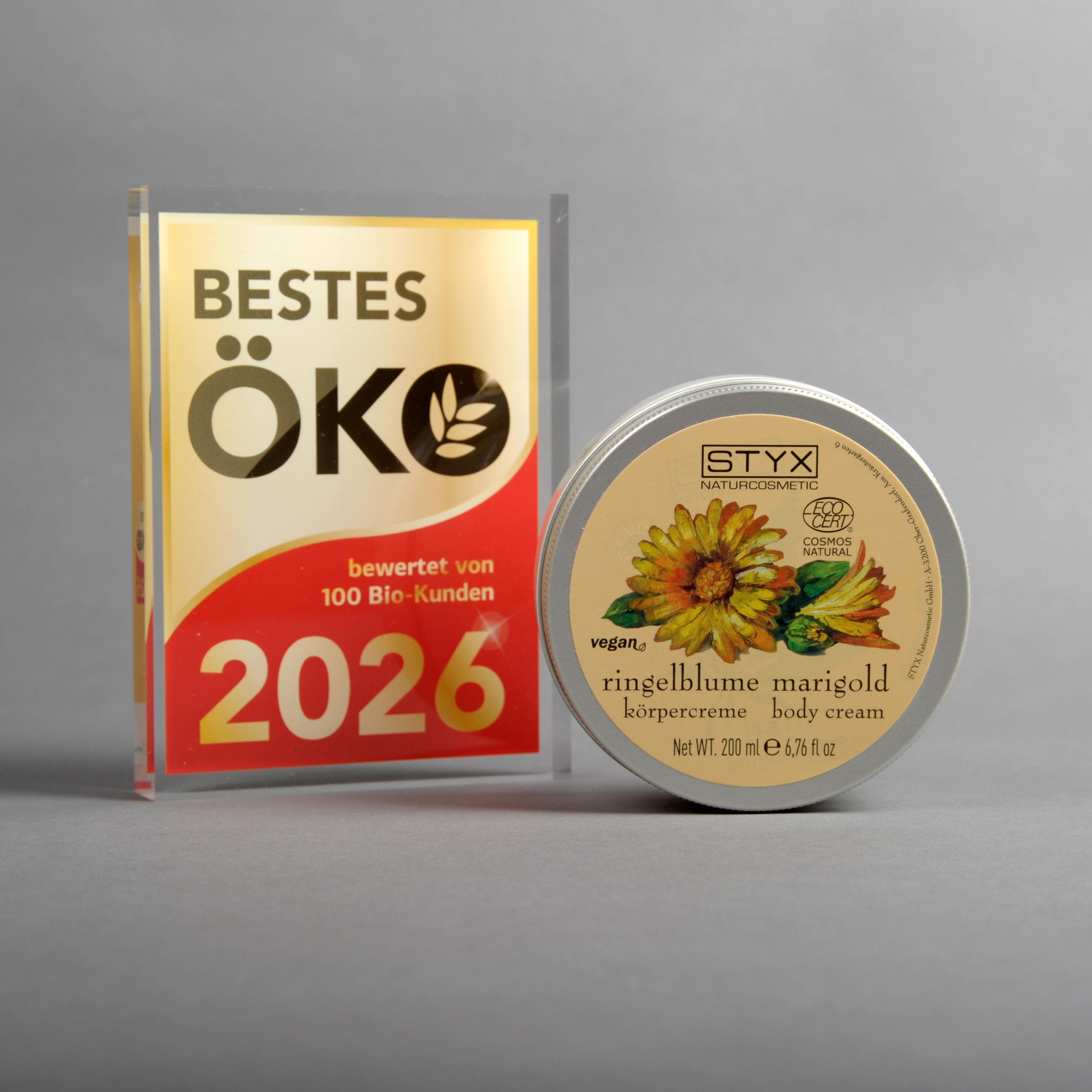 Unsere Ringelblume Körpercreme 50 ml wurde als „BESTES ÖKO 2026“ prämiert, und unsere vegane RUM-COCOS BIO-Edelbitterschokolade 70 g erhielt den Titel „BESTES BIO 2026“.