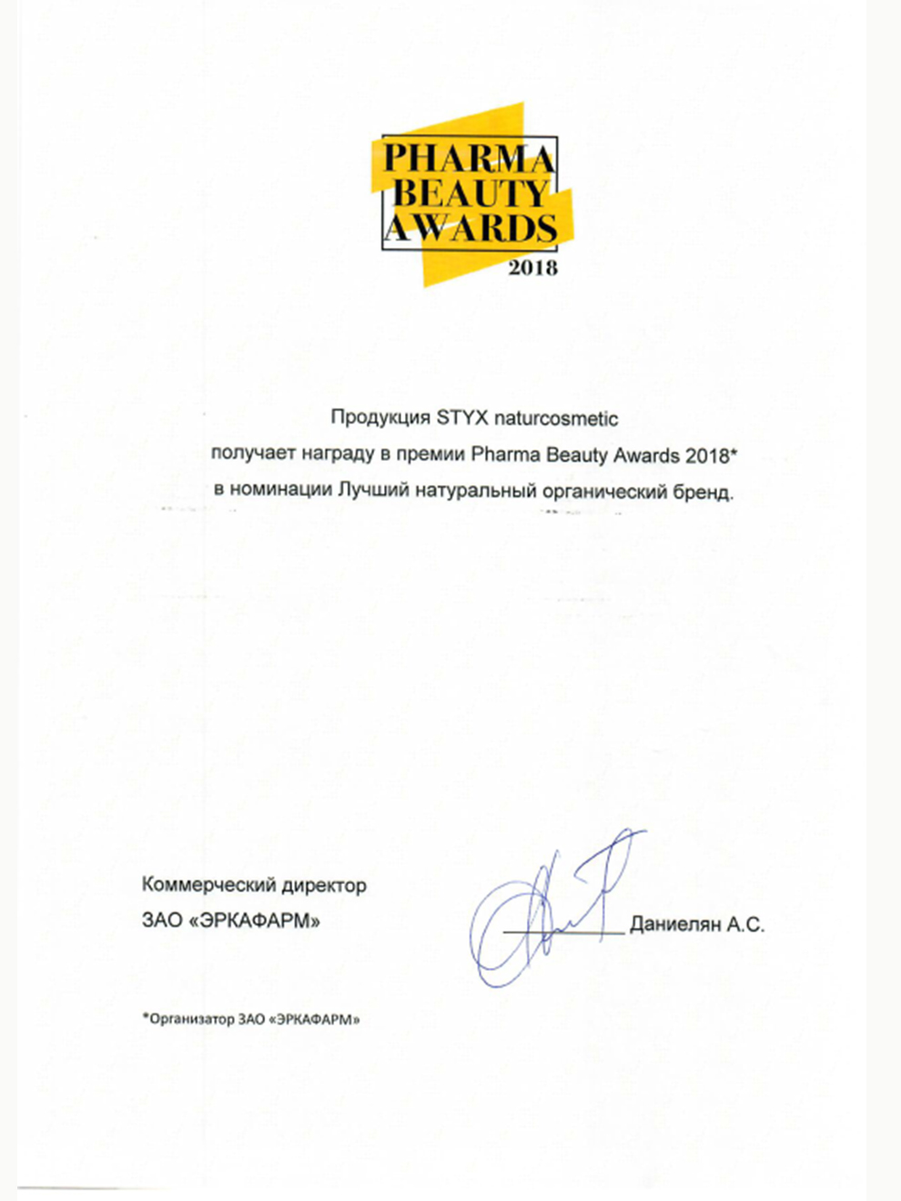 Hurra! STYX Naturcosmetic in Russland wird von den Pharma Beauty Awards 2018 als beste Marke für Bio-Kosmetik ausgezeichnet.