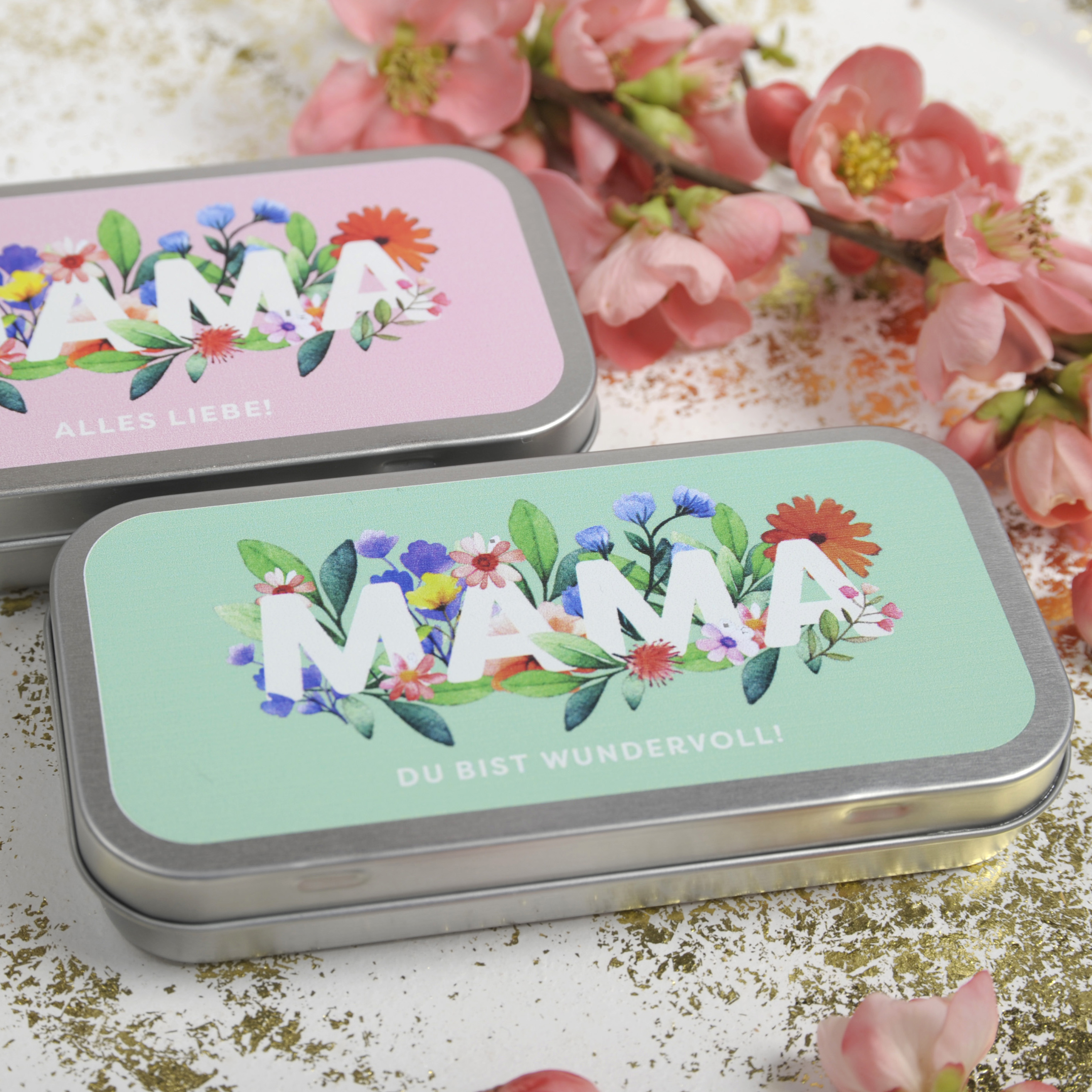 In das liebevoll gestaltete Metalletui passen alle unsere 70 g Schokoladen! Welche ist die Lieblingsschokolade Ihrer Mama?