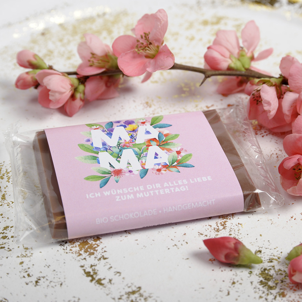 Die weiße Schokolade bestreut mit Lavendelblüten ist sowohl optisch als auch geschmacklich ein Genuss! Die Botschaft auf der Banderole passt perfekt für den Muttertag!