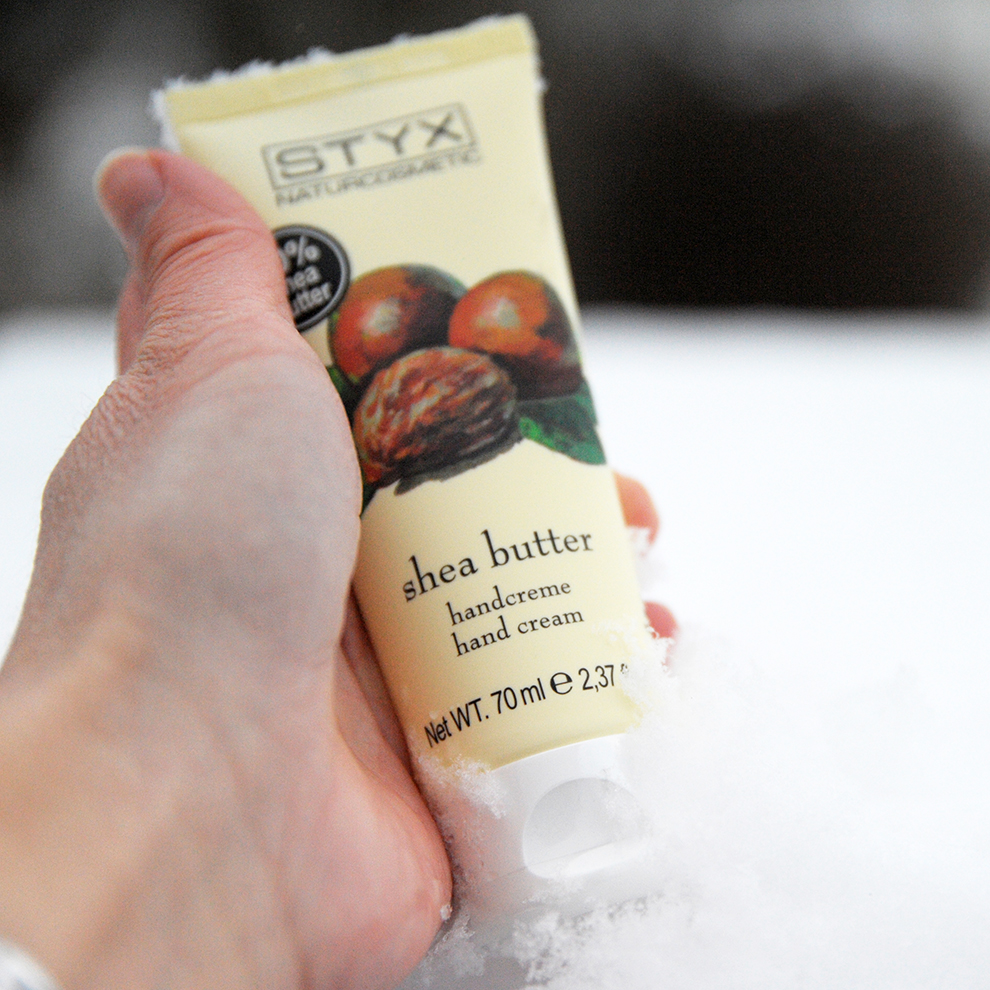 Eine Portion unraffinierte Sheabutter in das warme Wasser mischen. Die pflegenden Inhaltsstoffe können intensiv in die Haut einziehen – für die Extraportion Pflege an kalten Tagen.