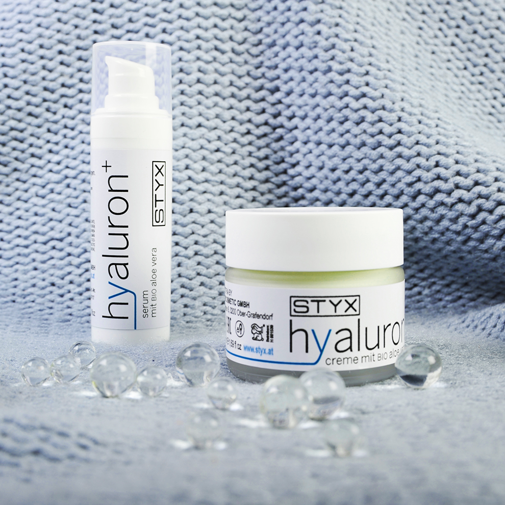 Das hochkonzentrierte, COSMOS NATURAL zertifizierte Hyluron+ Serum kombiniert nieder-, mittel- und hochmolekulare Hyaluronsäure. Die unterschiedliche Molekularmasse des Wirkstoffes gilt als besonders effektiv. Denn: während ein Teil tief in die Haut eindringt, Fältchen aufpolstert und die Haut durchfeuchtet, bleiben die größeren Moleküle an der Oberfläche. Dieser hauchzarte Schutzfilm sorgt für ein sofort sichtbares, glatteres Hautbild. Neben Hyaluron enthält das Hyaluron+ Serum viele natürliche Inhaltsstoffe wie BIO Aloe Vera, Shea Butter, Macadamia Nußöl sowie Ringelblumen- und Rotalgen-Extrakt. Diese unterstützen mit einer Extra-Portion Feuchtigkeit und beruhigen, pflegen und versorgen empfindliche Haut optimal.