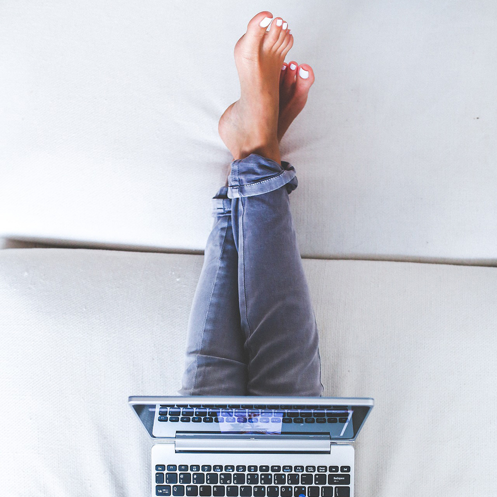 Mit den falschen Schuhen schadest du nicht nur deinen Füßen - auch deine Beine, Knöchel und Kniegelenke werden unnötig belastet. Bei hohen Absätzen kommt es zu einer Gewichtsverlagerung auf den Ballen. Dagegen sorgt flaches Schuhwerk dafür, dass der Fuß besser abrollen kann, was die Funktion der Wadenmuskelpumpe verbessert. Du solltest auch unbedingt auf genug Zehenfreiheit achten. Im Homeoffice wird sich aber das Thema mit hohen Absätzen nicht stellen!