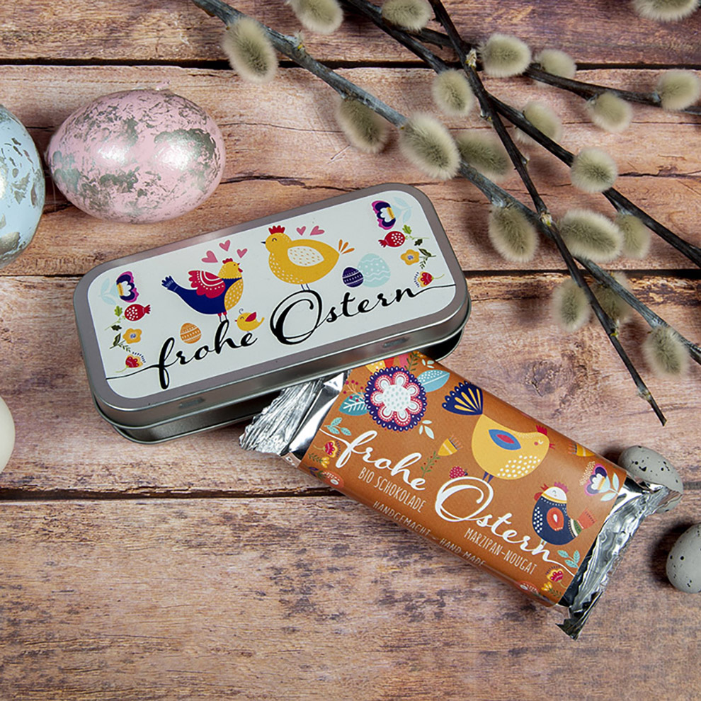 Lieblingsschokolade von STYX in einem Metalletui im Osterdesign!