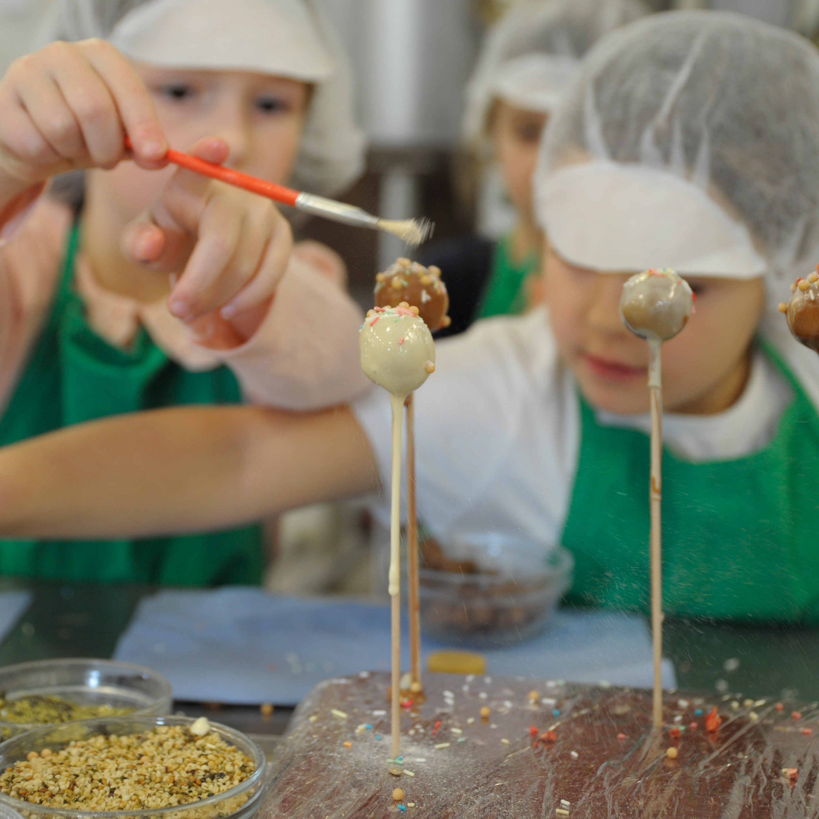 Der Workshop beinhaltet eine kurze Schokoführung, dann geht es mit Schürze und Haarnetz in den Produktionsbereich wo erlesene Pralinen selbst gefüllt und verziert werden.